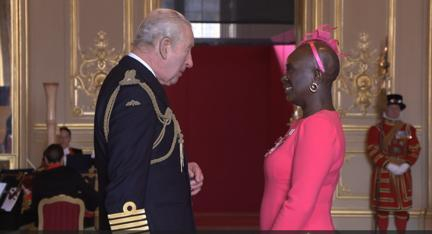 ওসমানী স্কুলের প্রধানশিক্ষিকা মিস রেমি’র কিং চার্লসের কাছ থেকে এমবিই এওয়ার্ড গ্রহণ