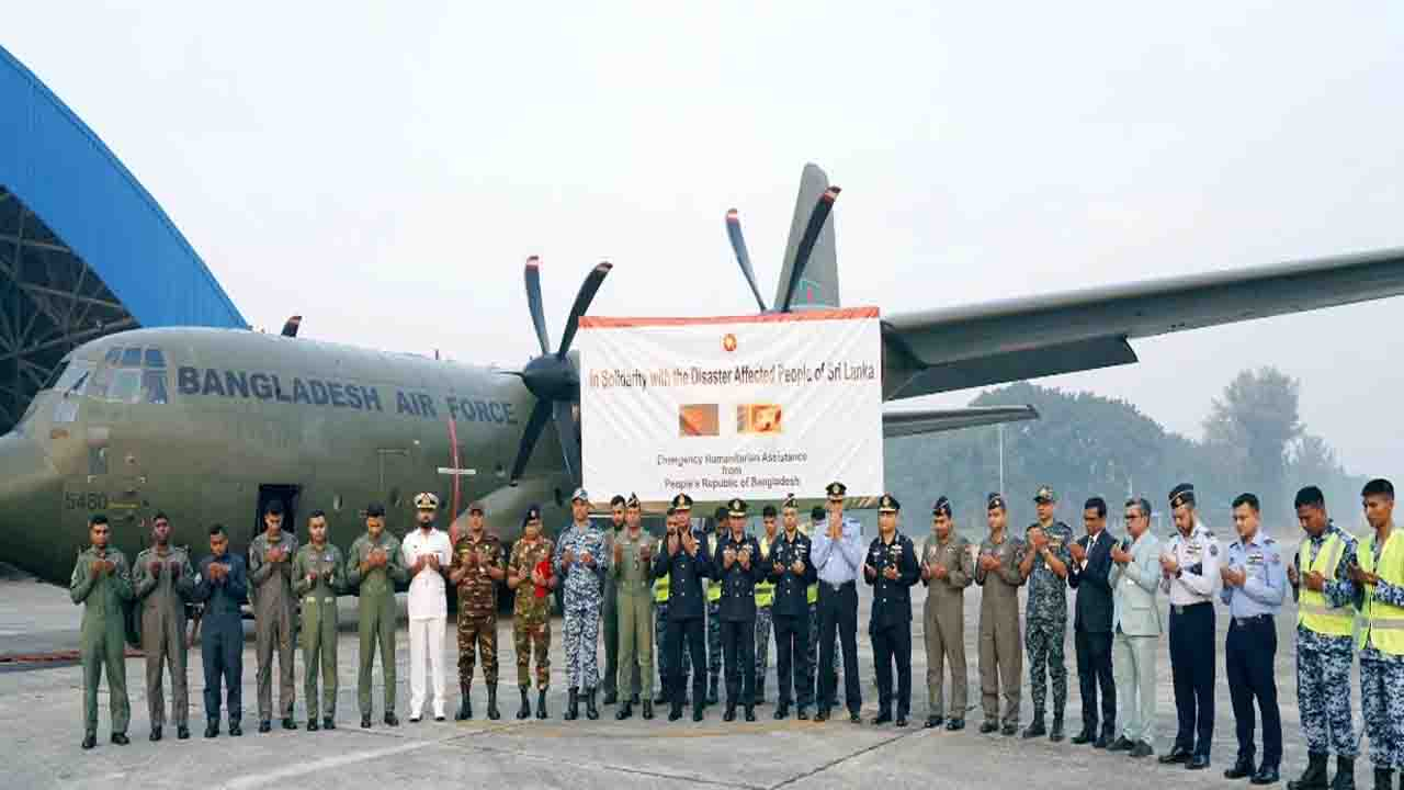 শ্রীলঙ্কায় ঘূর্ণিঝড় ‘ডিটওয়া’র প্রভাবে সৃষ্ট আকস্মিক বন্যা ও ভূমিধসে ক্ষতিগ্রস্ত মানুষের সহায়তায় ত্রাণ পাঠিয়েছে বাংলাদেশ সরকার। প্রধান উপদেষ্টার নির্দেশে বুধবার বাংলাদেশ বিমান বাহিনীর ১৫ সদস্যের একটি ক্রু দল, সশস্ত্র বাহিনী বিভাগের একজন কর্মকর্তা ও পররাষ্ট্র মন্ত্রণালয়ের একজন প্রতিনিধিসহ ১০ টন ত্রাণ সামগ্রী নিয়ে কলম্বোর উদ্দেশে যাত্রা করে।